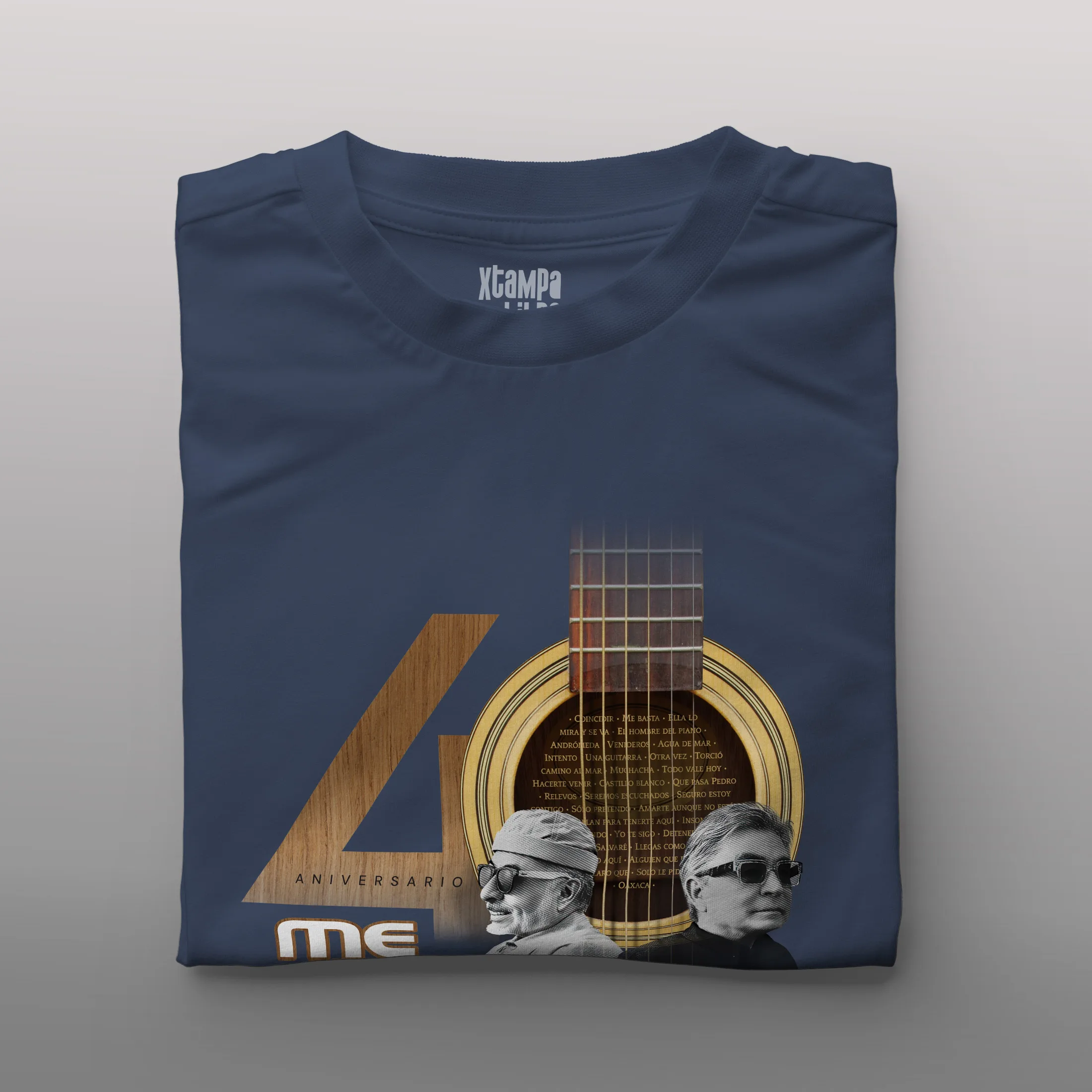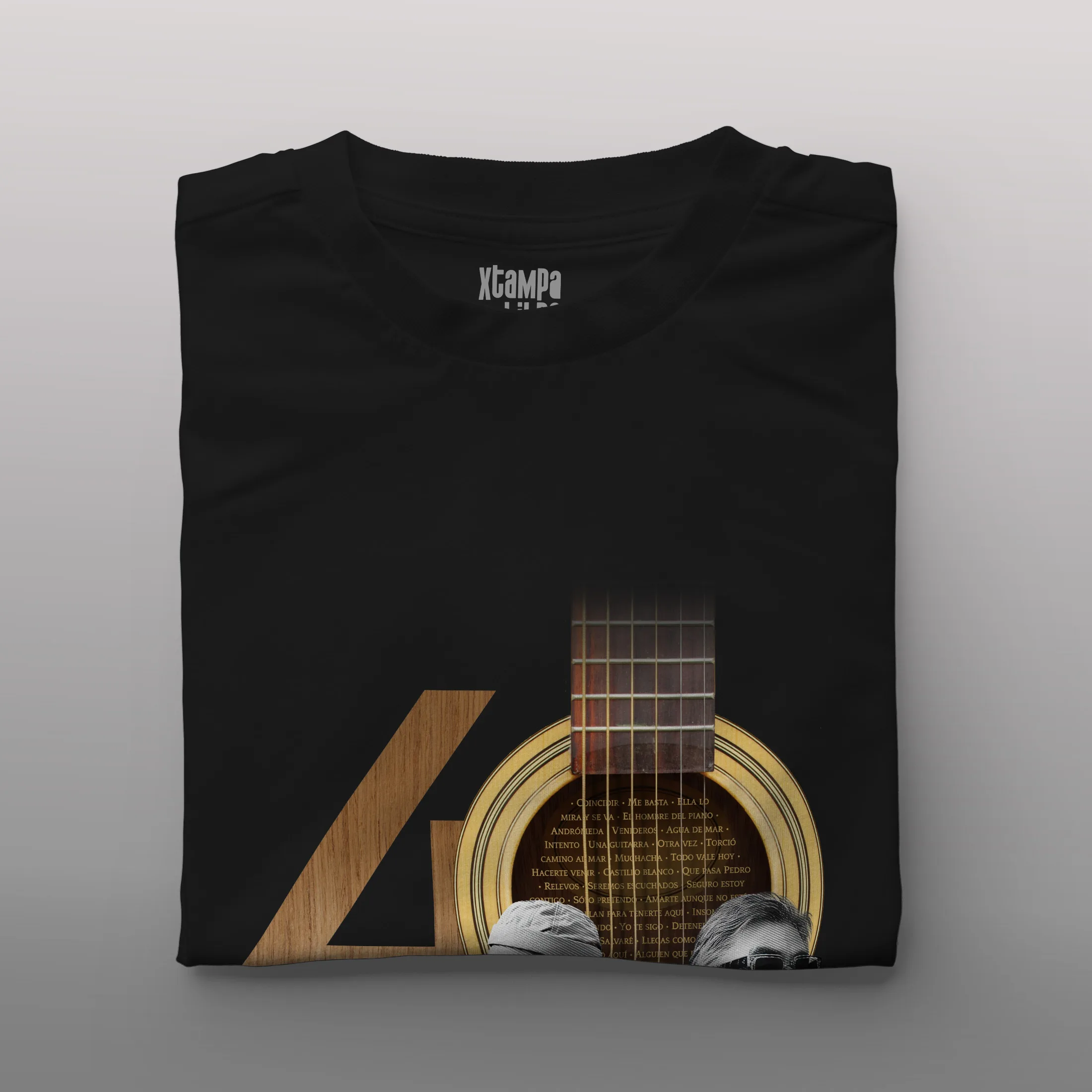 El diseño conmemorativo incorpora una guitarra integrada en el número 40, símbolo del equilibrio entre la música y la palabra que ha definido al dueto durante cuatro décadas. Con líneas limpias y un estilo elegante, esta playera refleja el espíritu poético, humano y musical de Mexicanto.